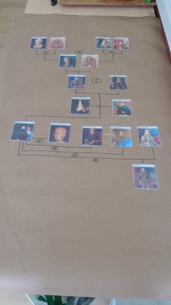 Siguen mostrando interés durante las sesiones por las diversas anécdotas de la época y poco a poco vamos contextualizando los hechos históricos mundiales con lo más concreto de los reyes y reinas españoles.
